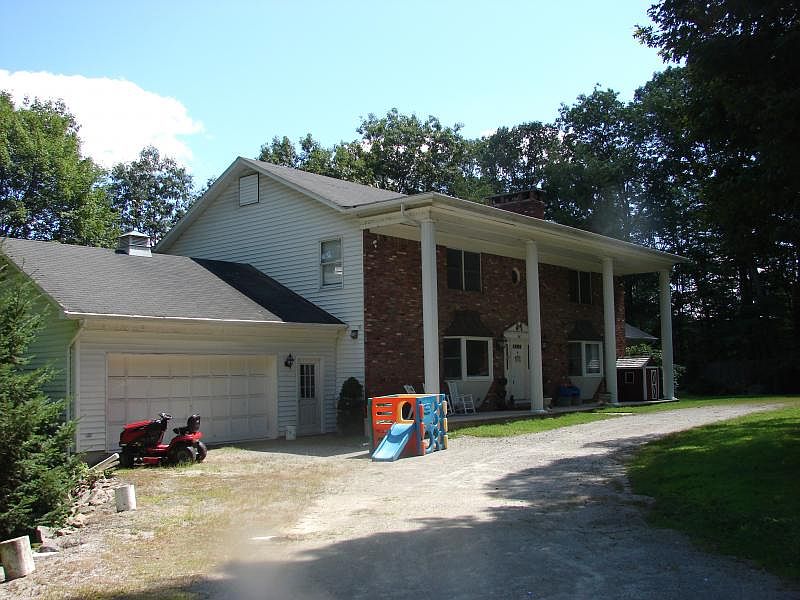 Secluded custom built colonial on 11 acre lake shared with one other home. Fireplaces in living room and 2 bedrooms, large rooms throughout, set on extremely private 12+ acre lot.