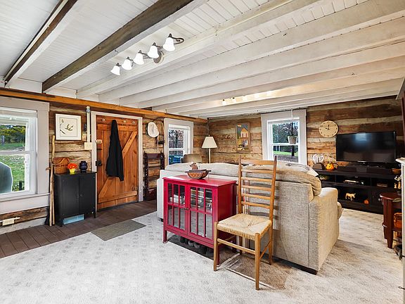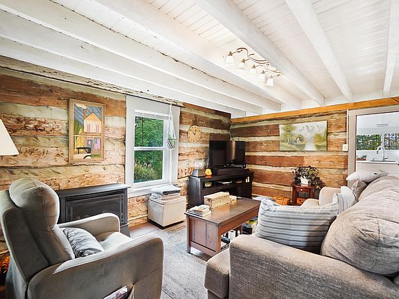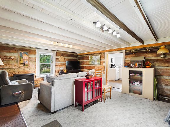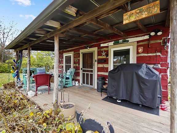 Enjoy rustic country living in this charming log cabin with hand hewn logs on 5 wooded acres. With a cozy 700 square feet of living space, this one bedroom, one bath updated home is a perfect starter home for an individual or a couple. Available partially furnished, it is move in ready and includes washer, dryer, dishwasher, refrigerator, propane cooking stove and heat. High speed internet is available. All new windows, a heated bathroom floor, 200 amp electricity and generator hookup. Enjoy watching deer, turkeys and wild birds from your living room windows or front porch. This is a rare opportunity to own property in the country but still be close to the city with room to add on or build new.