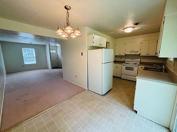2 Bedroom, 1.5 Bath Townhouse (end unit) with outside storage, patio, heat pump, A/C, washer/dryer hookup, carpet/vinyl flooring, refrigerator, stove and dishwasher. Pets are allowed. Undergrad friendly. Non-smoking unit. Lawn care, snow removal and garbage/recycling service included. On-site dumpsters. Residents are responsible for all other utilities. Carriage Square Townhomes. Built in 1975.