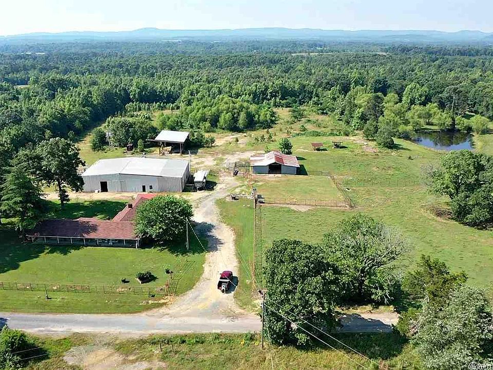 Remodeled 1751 sq ft Brick home, with 636 sq ft carport, 821 sq ft of porch area,6000 sq ft ware house with open span in the shop part, 3 phase electric, & 12 ft in height, approx 500 sq ft of sheet rocked area that was offices with a nice bath. A 2nd bath in the warehouse; a barn with a middle run, stalls & a tack room;pole sheds 48X58 40X100; and a really nice pond. The house has a large great room/fireplace; formal dining open to remodeled kit; Bdrs are split & each/remodeled bath;& utility room