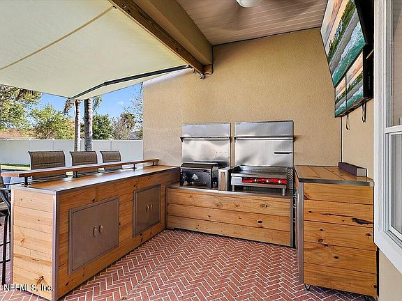 This home has it all!! Lots of bedrooms, Travertine tile flooring, an open kitchen, breakfast nook and family room but also a separate formal living and dining room. Endless spaces!! Upstairs has a bonus room with another bed and bath that is great for guests or that kid who isn't ready to move out. You will love the backyard because not only is it spacious, it has a fabulous (new) outdoor kitchen with all the bells and whistles. The retractable awning and 3 (yes, 3) tvs convey with the sale. This home offers a beautiful community loaded with amenities, great schools and close proximity to I 95 for easy commuting. Don't miss out on this one!!