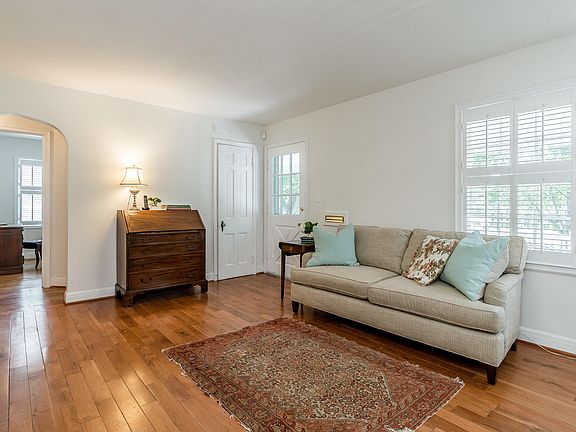 Charming new listing featuring a beautiful addition by The Louis Partnership that includes a first floor primary suite, laundry and a spacious eat in kitchen. The traditional St. Matthews cape has been reconfigured for a modern lifestyle and offers all first floor living with the bonus of a second floor suite. Impeccably maintained with recently refinished flooring, fresh paint, a fireplace, a fourth bedroom option with a reserved closet area, plantation shutters, arch entryways, a security system, two HVAC systems, 9' ceilings in the addition, wood shelving, double closets in bedroom suites and a generator.. Entering the back yard through an electronic gate is an oversized garage, a courtyard and an expansive patio area with endless possibilities next to a maintenance free privacy fence.