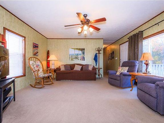 UNDER CONTRACT -- Less than $100K for a nice home on large lot with year round lake view. There is a community dock that may have a slip available but no slip with this home for this price. The common ground has a ramp for owner use and there is plenty of room on your own lot for trailer parking. NO HOA fees at all. Only $60. a year for water and $54. a month for public sewer. Just 2 min. via water to the ever popular Ha Ha Tonka Cove. Meticulously maintained newer home offers plenty of parking & gorgeous lake view. NOT your typical lake manufactured home! $10,000+ invested in the retaining wall and site work for home placement in 2011. Bonus public sewers and community water with newer water lines and new well pump and tank. No worries about failed septic system here! Just minutes from Camdenton. 3 Bedrooms, 2 Full Baths w/open floor plan & spacious master suite. Breakfast bar and fully equipped with dishwasher, built-in microwave, smooth top electric range and refrigerator. Wrap around deck offers an unobstructed lake view. This property is owned by licensed real estate agents -- we used it for personal use and was never used as a vacation rental property. For sale by owner-broker. Conventional or FHA loan. Qualified interested buyers please contact Julie 314,435,7982