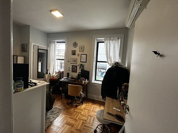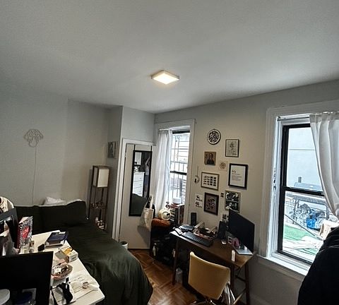 The room is 12 x 8.5 ft. It is spacious with 2 windows, with private rooftop access, built in closet space. There is a W/D in unit, and customizable AC in every room. It's a quiet and diverse neighborhood with easy walking to prime Williamsburg, Domino Park and McCarren Park. The apartment is open concept- great for hosting friends and chilling out. The generous common space gets bathed in light with South-west facing windows. The kitchen is comfortable to cook in and has plenty of counter space. The lease is yearlong. Move in date is September 1st.