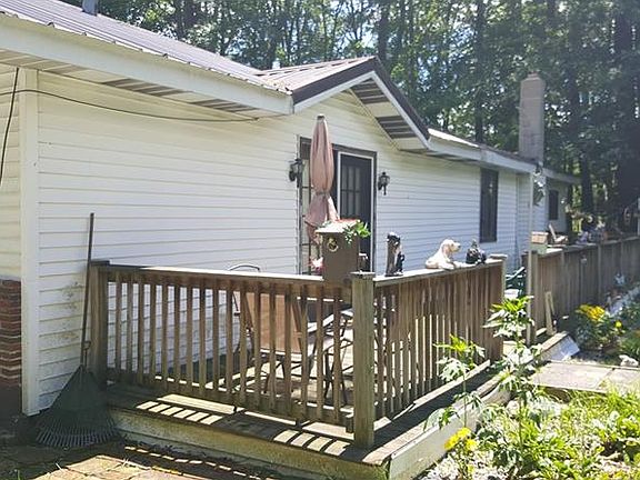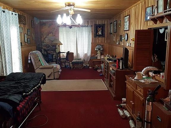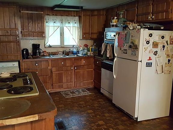 Multiple garages. 26 x 28 pole building, 24 x 24 garage, small barn building and shed. Tucked back in on 1.35 acres is a ranch style three bedroom original mobile home with a living room addition plus a family room addition. Newer metal roof. Side decking. Mudroom entry, separate dining area and wood free standing fireplace.