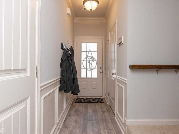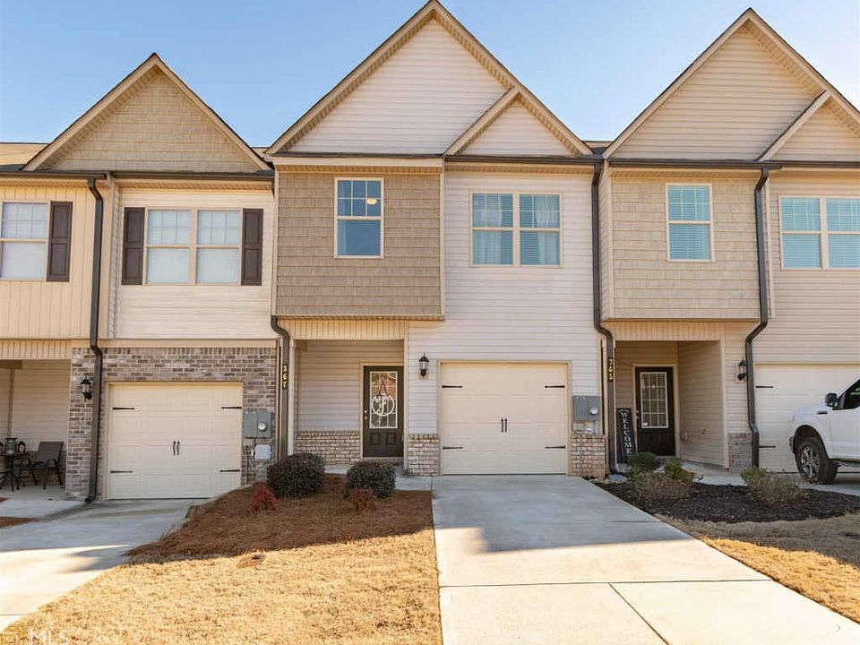 Ready to move in and enjoy this townhome. Beautiful neutral grey wood like laminate flooring on the main. Kitchen has plenty of all black cabinets, a walk in pantry and an eat in area. Cozy up in the family room next to the fireplace. Master suite upstairs has trey ceilings and a large walk in closet. Master bath has double vanities, a garden tub and a separate shower. The laundry room is upstairs. Extra storage space in the attic. Enjoy the back patio and privacy of a wooded area.