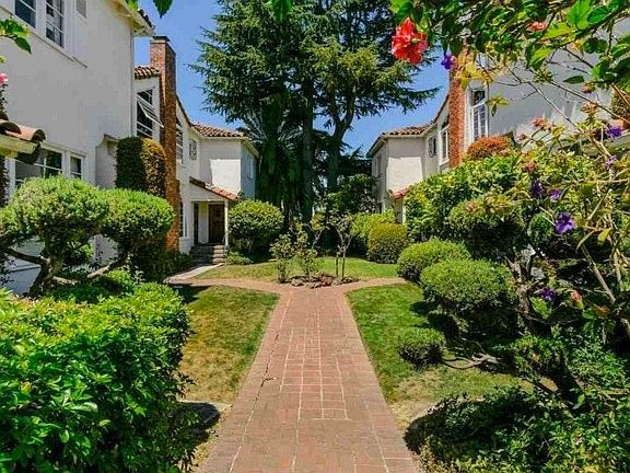 Beautiful 2-story Mediterranean-style townhouse, with living room, dining room and kitchen downstairs, a master bedroom, large second bedroom and bathroom upstairs. A bright, cheerful and quiet home with old-world charm: high arched ceilings, a working fireplace, built-in wooden hutch in dining room, large casement windows, detached garage, and an enclosed landscaped community garden that leads to the front door. A short walk to Lake Merritt, just up the hill from Whole Foods Market, close to downtown Oakland, the 580 freeway, buses and BART. Water, gas (heating and hot water), and garbage included in rent. A unique place to live. OPEN HOUSE SATURDAY 9/30 FROM 5:30 TO 6PM. Owner pays for trash, sewer, water, and gas (including heating).