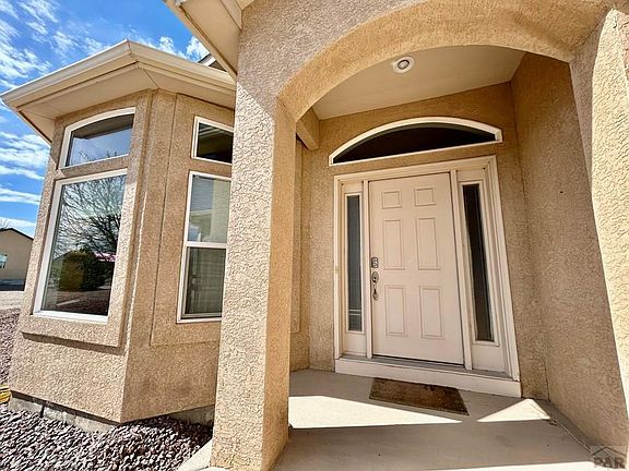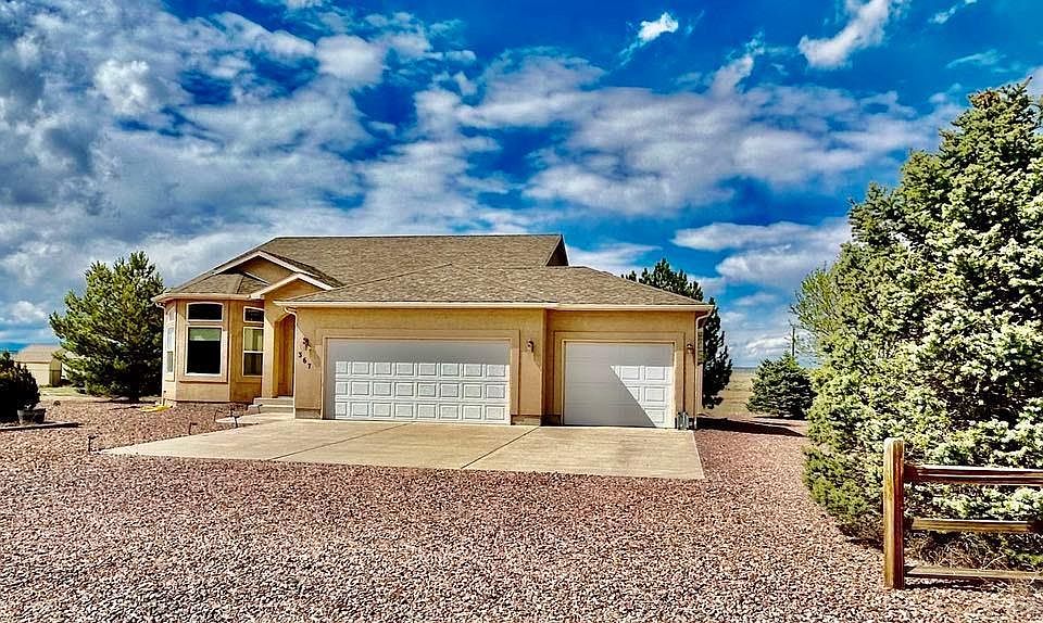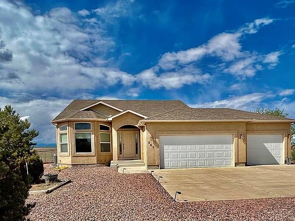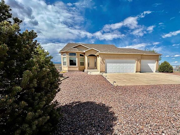 Beautiful home on the north side of Pueblo West that backs up to Walker Ranch, providing uninterrupted views of Pikes Peak and the surrounding mountains! Very peaceful and secluded feel, yet close to all of the amenities, including schools, shopping, restaurants, golf courses, and more. Unique floorplan with 4 levels, including a bonus office/study/sitting room adjoining the spacious master suite, 5-piece bath, large walk-in closet, multiple living rooms on the main and upper levels with plenty of natural light, and a large family room in the basement/lower level. Additional room for expansion/bedroom is possible in the basement. Large 3-car insulated garage with drywall. Many mature trees surround the property with very low-maintenance landscaping. Plenty of room to build your dream barn/garage towards the back of the property! Only 10 minutes from Lake Pueblo State Park and 40 minutes to Fort Carson. One year warranty and 2:1 buydown is included!