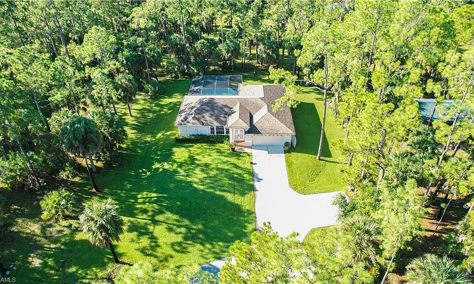 BRAND NEW ROOF. This beautiful 5-acre property is completely fenced in and equipped with stables, ready for your horses! Enter through the gate to the long winding paved driveway and arrive at your new home! Offering 3 bedrooms, 2 bath, and a 2-car garage. Great layout with split bedrooms, offering both privacy and functionality, interior finished with tile and laminate flooring, granite countertops, RO system under kitchen sink for drinking water, alarm system, sliding glass doors from the master bedroom and living room leading to the lanai and pool area. Enjoy year-round swimming in the heated screen-enclosed pool that was added in 2019 with a paver deck, covered lanai, and outdoor shower. In 2020 the horse stables were built, as well as a large carport, designed to accommodate an RV or boat. This place is perfect if you want a peaceful home that's also close to shopping and beautiful Naples beaches. You'll have plenty of space and privacy here, you can expand, add a guest house or a much larger home. Perfect for a family compound, it provides ample room for boats, RVs, horses, fruit trees, and more. Make this your dream Florida home! Plus all 5 acres are UPLANDS.