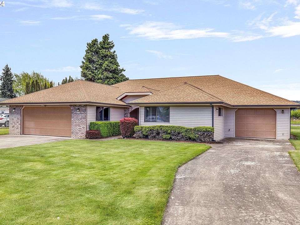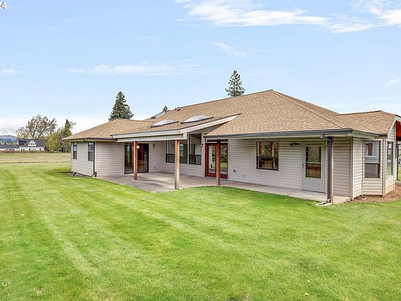 Discover the perfect blend of space and comfort in this custom-built, one-level gem! This spacious 2-bedroom, 2-bathroom home sits on a sprawling acre of land, with recent updates including fresh interior paint and flooring in 2023, and a new roof in 2022.Upon entering, you'll immediately appreciate the thoughtful design and attention to detail that defines this residence. The open floor plan seamlessly connects the living, dining, and kitchen areas, creating a welcoming and versatile space for both daily living and entertainment. The heart of this home is undoubtedly the kitchen, boasting ample counter space, double ovens, and an island perfect for meal preparation and casual dining. The owner even customized the kitchen with a convenient office space! The two generously sized bedrooms and baths offer flexibility, allowing you to choose your primary suite based on your preference. Ample storage throughout the house, including lots of cabinets and closets, ensures that everything has its place. Plus, the second garage/shop could easily be transformed into more living space. On the west side of the property is a 3bd. 2 ba. manufactured home. It is used as a hardship dwelling. Step outside, and you'll discover an expansive yard with endless possibilities. The property even has Farmers' Irrigation for those who dream of lush gardens! This location couldn't be more convenient, offering easy access to nearby amenities, parks, schools, shopping, and more. Don't miss the opportunity to make this beautiful property yours.