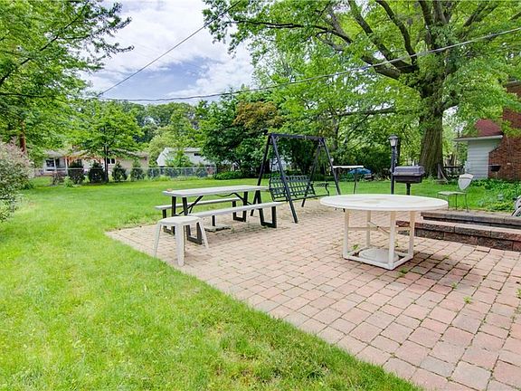 Bigger than it looks! Deceptively large split level home with nearly 2000 square feet of living space on huge 1/4 acre lot. CENTRAL AIR. Step inside to the light filled great room with large windows, vaulted ceilings, hardwood floors, and stone fireplace. The renovated, open concept chef's kitchen features Berch cabinets, an incredible Frigidaire Professional stainless steel range with vent hood, granite counters, undercabinet lighting, laminate flooring, and all appliances included. The modern kitchen has plenty of space for an island and is open to the dining room and family room with 2nd fireplace and built-in shelving. Large laundry room, a half bath, and several closets complete the main level. 3 bedrooms and 2 full baths upstairs including the master suite with large closet and private bath. There's a walkout to the brick paver patio with gas grill, plus you can enjoy the HUGE PARKLIKE BACKYARD which is mostly fenced in. Home is violation free, sold as is and comes with a 1 year home warranty for peace of mind. Great location on a low traffic tree lined street, yet a short drive to parks, shopping, University Circle, and highways.