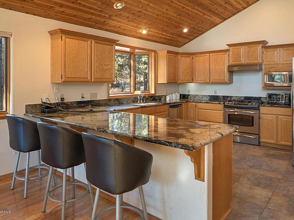 Single level, 5 bed, 4 bath home with two master suites and gorgeous golf views! Enter to an open, upgraded kitchen, dining room and greatroom with cathedral ceilings, stone fireplace & sweeping views of the Canyon 13. The floorplan of this home creates two living areas - kitchen, dining and greatroom on one side, and media room, large playroom/entertainment area and spacious office - with built-ins and a wetbar - on the other. Gather in the kitchen while the family plays pool, ping pong or watches TV down the hall. The master suite has a cozy, two way fireplace. With two decks, enjoy views of the Canyon 13 T box and fairway. Single owners built, renovated and maintained this home with care. Near the putting course and two parks, experience the best of Forest Highlands!