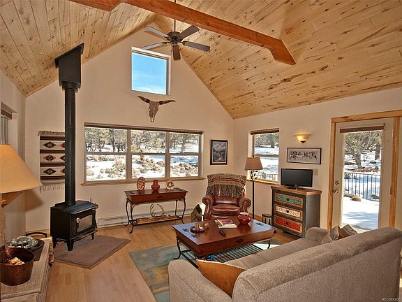 This is the perfect mountain retreat getaway nestled deep in a cul de sac with almost 4 acres of land to protect privacy & invite wildlife. Sit on the front porch and watch the sunset, or enjoy unobstructed mountain views from the 400 square foot back deck or living room. The property is situated in a stand of pinon pines, privately tucked away from neighboring homes. All of the high quality furnishings are included. The home is in exceptional condition with a newly updated bath, enhanced crawl space insulation, new stove and new washer/dryer. New deck is maintenance-free. Tongue & groove vaulted ceiling; French doors open from living room to deck; eating bar; full kitchen includes dishwasher. Close to hiking trails, the northern entrance to the Great Sand Dunes, local spiritual centers. More than $60,000 in recent high-quality improvements. This home has potential as a full time residence, vacation home, or short term rental. The quintessential mountain cabin!