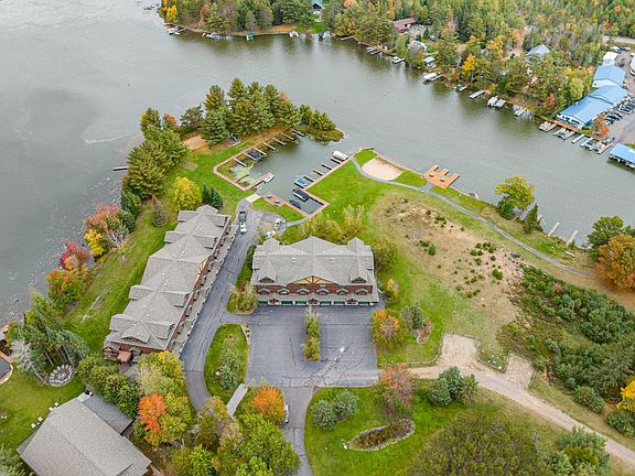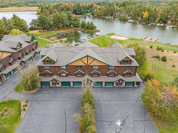 Enjoy this stress-free condominium lifestyle on the Eagle River Chain! Voyageur Crossings is an attractive gated community on Voyageur Lake. Unit 17 has wonderful water views with its own designated boat slip. The interior has a layout of two spacious living/family rooms for entertaining, 4 bedrooms, 3.5 bathrooms, beautiful master suite with a private balcony. The gourmet kitchen will make any chef envious w/ its stainless steel appliances, granite counters and pantry. A three-sided gas fireplace provides warmth for cool summer evenings and the covered lakeside balcony and patio area offers magnificent lake views! There is exceptional workmanship throughout with the 6 panel knotty pine doors, maple & tile flooring, tongue and groove cathedral ceilings, and closets galore. Custom landscaped grounds, with common areas including a sand beach area, boat launch, walking paths and ample parking round out the development. Sit back & enjoy in style at your new home at Voyageur Crossings!