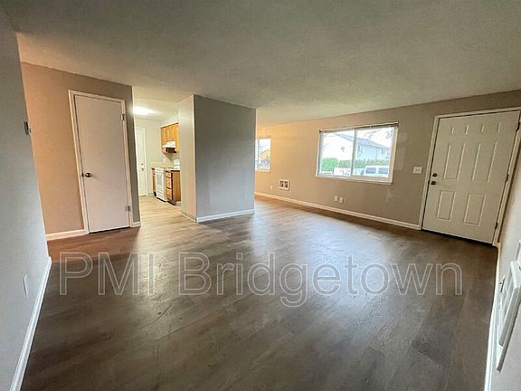 Updated single level duplex. 3 Bedrooms / 1.5 Bathrooms. Large Living Room. Spacious Bedrooms. Luxury vinyl plank flooring and carpet in bedrooms. One car attached garage divides the units. Updated kitchen, newer vinyl windows, fresh paint. Huge fenced in yard. Electric baseboard heat, washer/dryer hookups. Available for Move In February 19, 2025 (approximately). No smoking. Pets subject to owner approval. Pet rent ranges between $35 - $60 per month per animal depending on pet screening score. All applicants must submit a pet screening application. Completed applications are processed on a first come first serve basis. Application fee is $60 per adult applicant plus a $10 non-refundable payment processing fee. All adults residing in the property must submit an application. Tenant pays all utilities including electric, water, sewer, trash, cable, internet and landscaping. Tenant Liability Coverage required. Relocation Assistance Exemption: N/A. This is not considered an accessible dwelling unit. PMI Bridgetown residents are encouraged to enroll in the Resident Benefits Package (RBP) for $30 per month which includes HVAC air filter delivery (for applicable properties), credit building to help boost your credit score with timely rent payments, $1M Identity Protection, utility concierge service making utility connection a breeze during your move-in, resident rewards program, online portal access and much more! More details upon application. Professionally managed by PMI Bridgetown offering online application process and excellent customer service. All qualifying rental criteria and link to application can be found at PMI Bridgetown dot com. Information deemed reliable but not guaranteed.