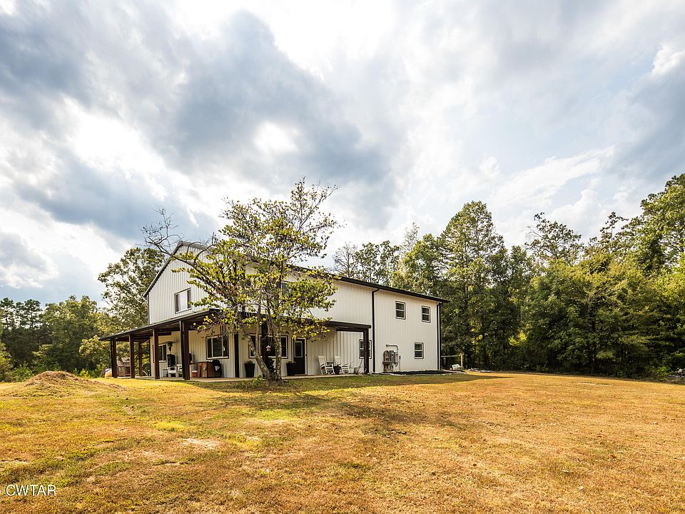 Welcome to the ultimate barndominium retreat! This stunning home has it ALL: 6 spacious bedrooms - all with walk-in closets, 3 full bathrooms - including a master with jetted tub, dual sinks & his/hers shower heads. Massive great room with soaring 20ft walls, 850 sqft wrap-around porch - perfect for relaxing or entertaining. Red Iron Construction with 130mph wind rating & concrete monolithic slab foundation. All metal siding & roofing - built to last. Tankless water heater, all gas appliances, and natural gas hookup. 3 central HVAC units for max comfort. Walkable 1500 sqft attic - tons of extra storage. 9ft ceilings (1st floor), 8ft ceilings (2nd floor). Smart features throughout: Nest thermostats, smart fridge, and Samsung appliances. Fiber optic internet already installed! 200amp electric service, power to garage & pool! Natural spring well - pure, fresh water! Oversized 4x4 & 4x8 windows (with lifetime warranties) for tons of natural light. Sitting on 6 acres of land with a pond this home is the perfect retreat.