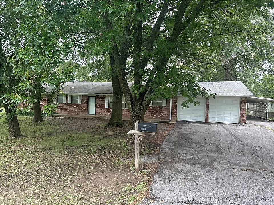 3 bedroom ranch style home with 2 full baths. 2 car attached garage with overhead door. Fireplace in living room. Inside utility area. Garage has small storage room. No appliances included in kitchen.