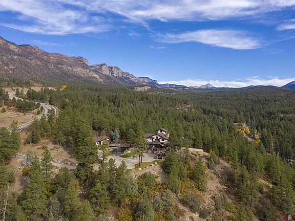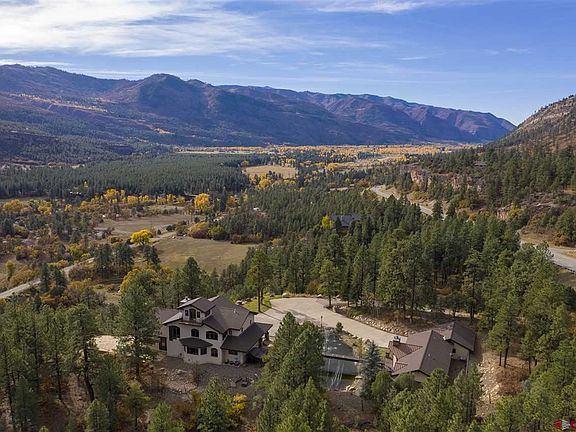 A lavish retreat, with panoramic southern and eastern Animas Valley and Northern rugged forest landscape with peeping Engineer mountain in the distance. "Top of the Ark" is a rare estate located between Durango and Purgatory Ski Resort, and just minutes away from the Glacier Club golf course with no HOA or covenants. What makes the difference between great and exceptional with a Colorado home, does not only comprise of what a home has to offer, but the adventures you can have. This home has easy year round accessibility and four seasons of fun. Private, but not off the grid, this tranquil estate is sure to appeal to someone wanting the true Colorado experience. After entering through the private gate you will be greeted by the breath taking stance of the front of the main house, the guest home to the left, a pond, and a stone staircase walkway. The three car heated garage on the main house also has a separated area that makes great additional storage for outdoor activities, a studio, or a small workshop. Taking groceries from downstairs to upstairs is a breeze with the dumbwaiter system. The lowest level also has a large laundry room, and a huge bonus room that would make a great movie theater and previously was a large oversize pool/game room. The main level has imported beveled turkish sandstone floors, mixed with exotic tiger wood flooring. There is a great room with a wall of windows and vaulted beamed ceiling, a wrap around wet-bar, a nicely positioned kitchen that has the sink facing the northern mountains, formal dining room, two bedrooms, a full bathroom and powder room. Owners suite? Try an entire level! Two separated entries can take you to the owner bath- that have two walk-in closets on each side, and built in dressers. The bathroom area has two separated toilets, vanities, a large tub, and a large shower. This is great for someone who has different schedules, or that enjoys having their own privacy and space. This layout is unique, but it makes a lot of sense. There is a private TV room on the owner level, that has been used as a workout space. There is a spiral staircase that takes you to an observatory also from this level that has 360 degree windows to stargaze, mediate, or use as a reading room. Back down to the main house level there is a walkway bridge that takes you over the koi pond to the guest home. The guest house is fully self contained and has 1 bedroom and 2 baths, a 2 car garage, laundry room, living room, full kitchen, dining, and spacious bedroom. All together this property has 5 garage spaces, 4 bedrooms, and 6 bathrooms. There is a closet designated for an elevator if the new owner wants one. This home would make a great full time retreat, VRBO, or corporate retreat. New asphalt shingle roof and less than two year old appliances. Images are limited to protect client privacy, showing qualifications include pre-approval or proof of funds. Request the youtube video for full tour.