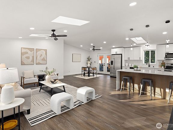 Luxury Meets Country Living! Welcome to this beautifully remodeled home on a 1.4-acre lot with stunning mountain views. Featuring 3 bedrooms and 2 bathrooms, this home offers an open-concept layout that seamlessly connects the living, dining, and kitchen—perfect for entertaining. The spacious kitchen includes elegant white cabinetry and sleek countertops. The primary suite is a private retreat with a luxurious en suite, double-sink vanity, and walk-in closet. Step outside to a large deck overlooking the mountains—ideal for relaxing or hosting guests. Enjoy cozy evenings by the firepit and ample parking on the expansive lot. This property perfectly combines luxury, comfort, and scenic charm. Lot just needs some cleanup.