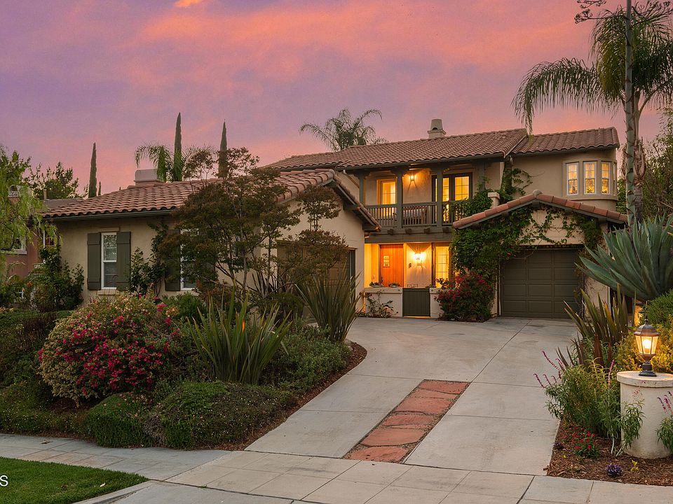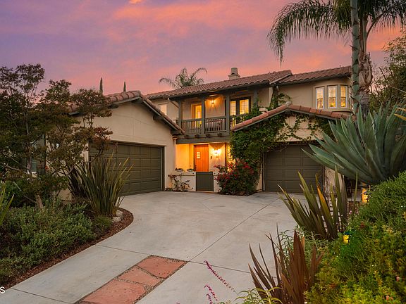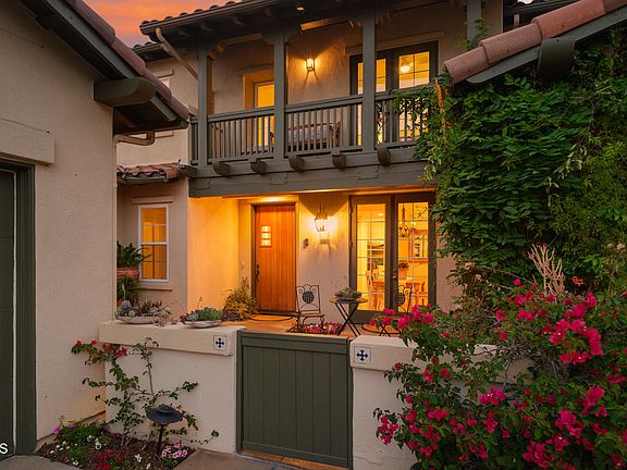 Welcome home to this gardener's paradise located in the gated community of La Vina. The entry courtyard welcomes you to the front of the home with a stunning fountain. Once inside, the entryway is flanked on each side by the formal living and dining rooms. The spacious family room has a custom built-in entertainment center and fireplace. The family room opens to the kitchen with a pass-through window. The kitchen allows room for a casual dining table in addition to the center island and walk-in pantry. A downstairs office, powder bath, and laundry room complete the downstairs. Upstairs you'll find two comfortably sized bedrooms and the primary suite. Balconies on both the front and back of the house provide stunning sunrise and sunset views. Host a dinner party or enjoy a glass of wine in your private backyard by the outdoor fireplace and built-in BBQ area. Enjoy your front row seats to the California sunsets with this west-facing balcony view of the Verdugo Hills. The unique three car garage allows for parking and ample storage. The La Vina community features a community playground, pool, walking paths, guard and access to an extensive network of hiking trails in the Angeles National Forest. Minutes to Old Pasadena and 15 miles to downtown Los Angeles. Welcome Home to this lovely La Vina residence!