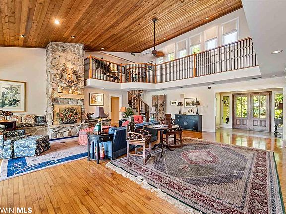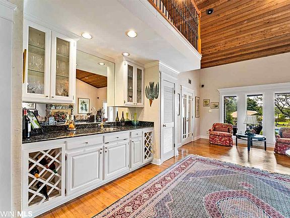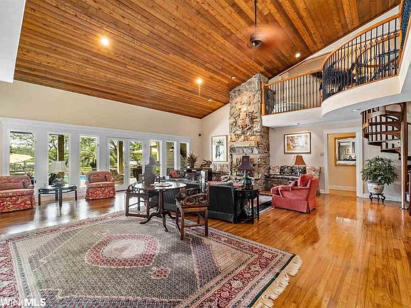 Waterfront living at its best! This gated Dog River property, just minutes from I-10, has it all: 4900 +/- sqft. main house, 1,085 +/- sqft. guest house, tennis court, pool, boat house with a spacious warf, and a huge storage building. The freshly painted exterior has hardy-board siding, new double insulated windows, large great room with a wet bar, fireplace, and soaring ceilings. The den is open to the kitchen with a view of the pool and river. The master bedroom can be up or down each with a covered porch. The guest house is adorable with nice kitchen, sitting area, bedroom, pretty bath, two built-in bunk beds in the hall, and a generator (seller does not warrant). All of this and more at a great price! All updates per the seller. Listing company makes no representation as to accuracy of square footage.