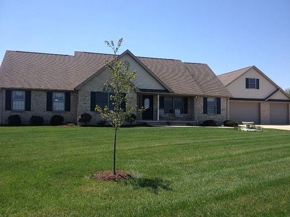 Country living at it's best. Custom built home on approx 2 acres offers a Great Rm with cathedral ceiling, formal dining rm, kitchen with custom cabinets and a 4 season sun room with french doors. The home has geothermal heat, Andersen windows, 6 panel doors, Kinetico Reverse Osmosis System, well insulated. A rare find is the attached 2181 sq ft thermostat control, heated garage. Totally finished with drains, cabinets, sink, could easily hold 9 cars. Nice pull down stairs with floored storage in the attic over garage.