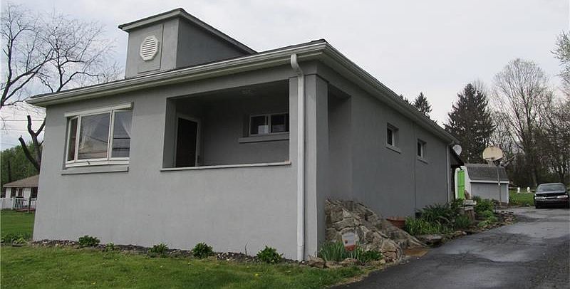 A rare gem of a home with a beautiful sunporch adjacent to a pergola that will be sure to delight guests when entertaining. Unique stone in the front of the home entry way originated from a Somerset County farm. Stone the adorns the sunporch room originated from a local stream. The 4 season sunporch is heated with a wood burning stove. Home features updated newer laminate flooring, neutral colors throughout (home will be freshly painted) and plenty of storage. Kitchen includes stainless steel appliances. Yard is large, level and tree-lined. Home also has a room in the basement that is used as a bedroom. A Pittsburgh potty is located in the basement. Extra room is noted as the sunroom 12X17.