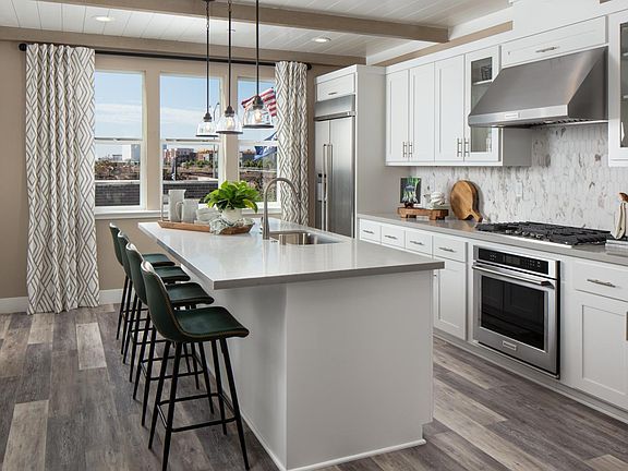 Move-In ready summer 2023! Stylish modern living. The Brixton's welcoming covered entry and foyer reveal the inviting stairs to the second floor main living level, opening to the spacious great room, casual dining area, and desirable covered balcony. The well-equipped gourmet kitchen is highlighted by a large center island with breakfast bar, plenty of counter and cabinet space, and sizable pantry. The private primary bedroom suite is complete with a generous walk-in closet, additional closet space, and spa-like primary bath with dual-sink vanity, luxe shower with seat, and private water closet. The secondary bedroom features a roomy closet and private full bath. Additional highlights include a convenient second floor powder room, centrally located third floor laundry, and additional storage. Convenient 2-car garage. Don't miss this opportunity—call today to schedule an appointment!