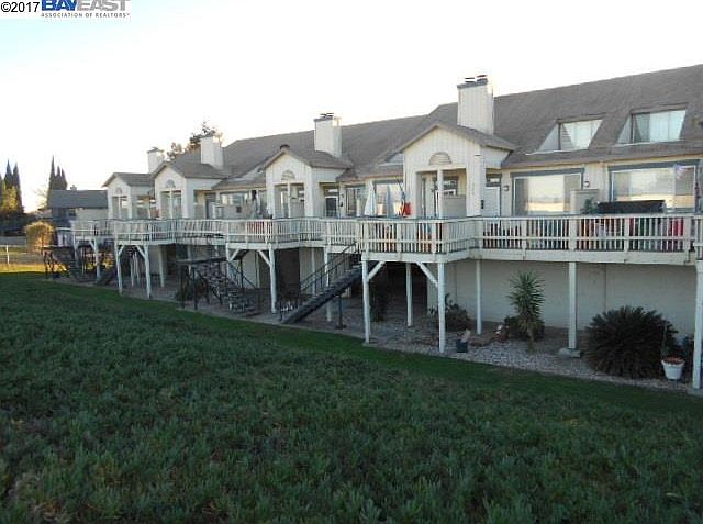 Resort living. Cheaper than renting in most areas. Water view from the living room, upstairs bedroom & large deck. Spacious living room w/fireplace. Laminate flooring. Inside laundry. One bedroom/one bath downstairs/master bedroom & bath upstairs. 2 covered garage spaces+lockable storage. Complex offers pool, club house & tennis courts. Unit has a 30 foot covered boat dock/locked marina. Fish off the dock. Run, walk the levee trails. Bring your buyers!