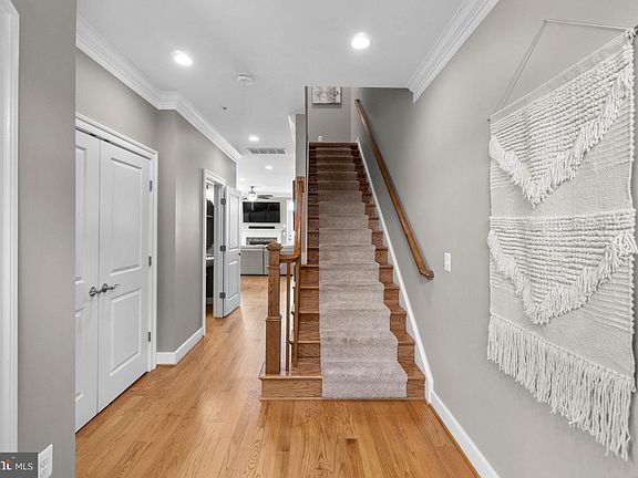 Welcome to 3671 Worthington Boulevard, a stunning brownstone, end-unit townhouse located in sought-after Villages of Urbana. This modern and personable 3-bedroom, 3.5-bathroom home offers spacious living space, with premium features throughout. Upon entering, you'll be greeted by the elegance of hardwood floors, crown mouldings, and recessed lighting. The windowed, eat-in galley kitchen boasts premium quartz counters, tile backsplash, stainless steel appliances, gas double ovens, and hardwired under-cabinet LED lighting. A custom-made, solid wood barn door separates the basement stairway from the oversized family room with gas fireplace and designated space for a dining table between the kitchen and family room. The custom, built-in dry bar with storage and shelving is perfect for entertaining. In the warmer months, open French doors in the family room to enjoy time outside grilling or relaxing on the low-maintenance composite deck. Upstairs, the primary bedroom features a vaulted ceiling, creating an open-air feeling, dual walk-in closets, an en-suite bathroom with soaking tub, separate shower, and a dual sink vanity. The spacious primary is large enough for a sitting or desk area. Two additional bedrooms, a hallway full bathroom, and bedroom-level laundry complete the upper level, offering comfort and versatility. The finished lower level, with an egress window and a full bathroom, provides space to use as a rec area, host your guests for a night, or convert into an office for remote working. Two additional storage rooms and the rear-entry, two-car garage with overhead racks allow for plenty of storage space. Enjoy a whole-home humidifier in the drier, winter months and a Nest wifi smart thermostat with multi-room sensors for year-round comfort. One of the few brownstone townhouses in the area, this property offers a unique and highly desirable living experience. Centrally located within walking distance to the regional library, grocery store, restaurants and retail, community and district parks, blue-ribbon awarded schools, and two of three community pools and clubhouses. Come experience the convenience for yourself!