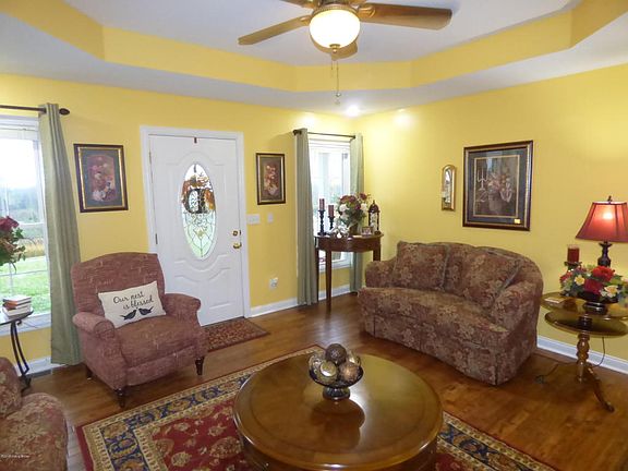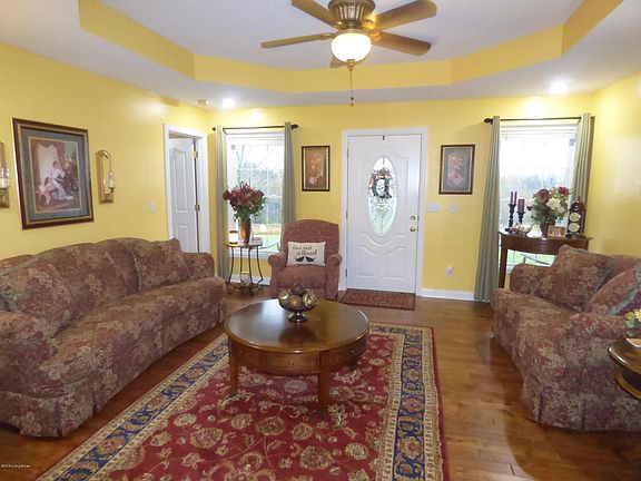 Beautiful One Story Home With A Finished Walk-Out Basement On 5 Acres In The Country...Yet Just Minutes From The City. Centrally Located Between Louisville, Lexington & Etown. This Better Than New Home Is In Immaculate Condition!! Main Floor Has A Living Room, Kitchen, Dining Area And Huge Additional Room That Is Currently Used As A Formal Dining Room But Can be An Office, TV Room, Recreation Or Craft Room Plus 3 Bedrooms & 2 Full Baths. Large Master Bedroom With A Walk-In Closet & Private Bath. The Finished Basement Has An Office Area, Playroom, Family Room With Fireplace & Laundry. Oversized Garage Plus A 29 x 40 Barn. Tons Of Parking & Drive Way Space. Covered Front Porch. Covered Back Patio. Above Ground Pool. Kitchen Appliances Can Remain. Great Views All Around!
