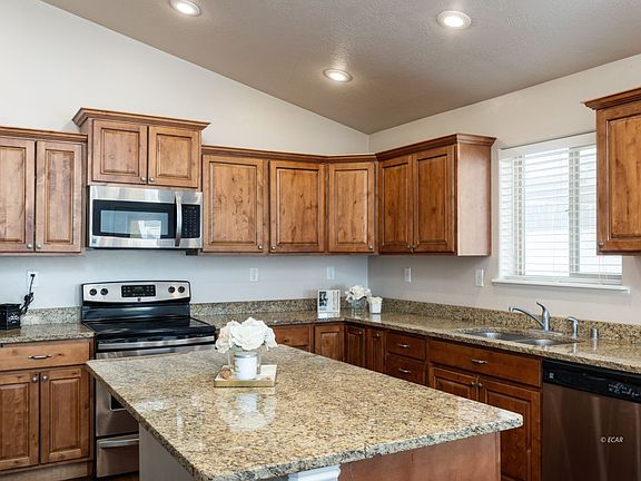 Located in Autumn Colors Subdivision just minutes from many of Elko's most popular shopping and amenities. This home has everything that you need on the main level as well as an unfinished basement that can be finished to your personal likings and needs, with the potential of 2 additional bedrooms, a full bathroom (already rough plumbed) and large family room. The home has been extremely well maintained and is move in ready! The yard has established lawn and landscaping and fully fenced back yard with additional concrete sidewalk on the side of the house. A full water softener system is included as well as stainless steel appliances with upgraded refrigerator. The great room is spacious with vaulted ceilings and large island, prefect for entertaining! The primary bedroom is large and has an attached full bathroom with jetted tub, separate shower and walk in closet. Home is located across from the park with unobstructed front views.