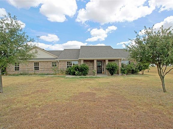 Great ranch style home on Acreage just outside of Waco!! This 3 bedroom and 2 bath home, built in 2007, features an open floor plan with large living flowing directly into the dining area. The oversize kitchen with bar height breakfast peninsula, granite counter-tops, pantry and lots of cabinet space. The spacious master suite features double vanities, walk in shower and large closet. Oversized sun room great for entertaining as well as a large covered patio for enjoying the breeze. The fully fenced 14 acres of space with private gated entry provides for an abundance of uses. Property includes a large shed with roll up door and walk in entry, shipping container, as well as multiple covered parking spaces for all of your equipment and toys. Shop features a rain water harvesting system. Schedule your private showing today!