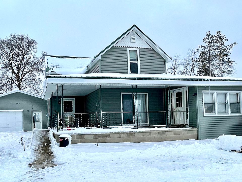 Spacious home within city limits. This home features a large covered porch with ramp accessibility, an attached garage, newer vinyl siding, metal roof, a new furnace installed in 2023. An entry foyer greets you and welcomes you into a cozy centralized living area. You will find a large eat in kitchen, full bath, first floor laundry and formal dining room, currently being utilized as a first floor master bedroom. The upper level offers three bedrooms and a half bath for convenience. Within walking distance to the ball field, library, restaurants and more. Deep backyard makes this even more family friendly for summer cookouts and yard games. Owner Requires 24 hour notice for showings. Road Frontage on 2 sides.