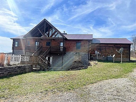 This beautiful custom log house is located on 3672 Randolph Goodluck Rd and offers an abundance of features and amenities. With two bedrooms and two bathrooms, both with custom wood bath tubs that double as jacuzzis, no detail has been overlooked. The large kitchen includes all appliances, while the living room is huge with a gas fireplace and plenty of windows to let in light. Wood floors run throughout the home, and the full ICF basement includes a tank less water heater and walk out. Outside, you'll find an in-ground pool and pool house, plus an outdoor fireplace. There's also a large building with three bays that adds to the property's appeal. All of this is set on 2.4 acres of beautiful Kentucky farmland. Don't miss this incredible opportunity; schedule a showing today!
