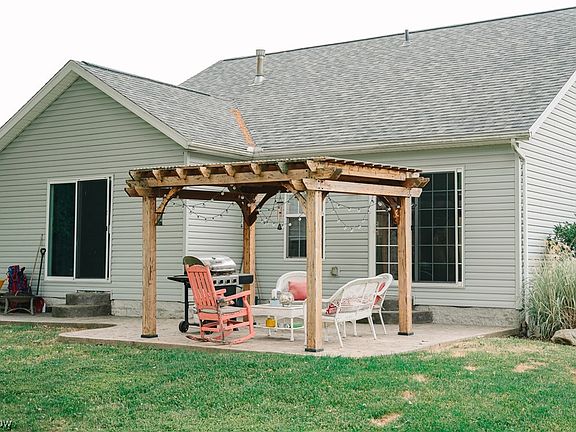 Country charm in Tuslaw school district! Nice home in cul-de-sac neighborhood. First floor features owner's suite with sliding doors to access back yard, with large walk-in closet and full bathroom. Also, on first floor is a 1/2 guest bathroom and laundry room. Enjoy sipping your morning coffee from the patio, underneath the pergola or enjoy the natural lighting the eat-in kitchen provides. The second level features 2 bedrooms and a full bathroom. Cheery, newer paint on ground level, roof replaced 2021, sump pump replaced 2020, hot water heater 2019, dishwasher 2021, refrigerator 2022. Flooring is a bit worn. Seller's will pay $5000 toward buyer closing costs to offset new flooring.