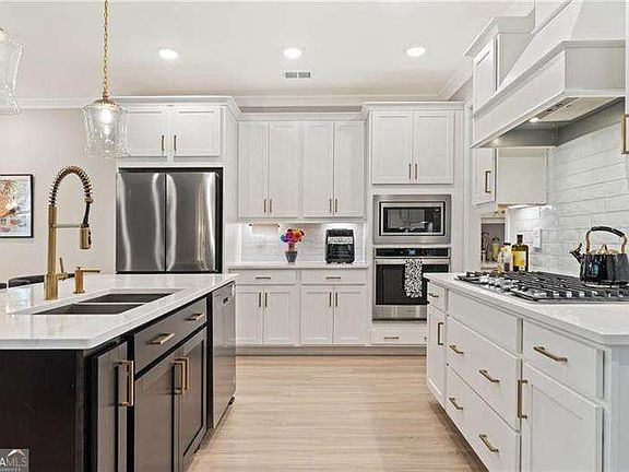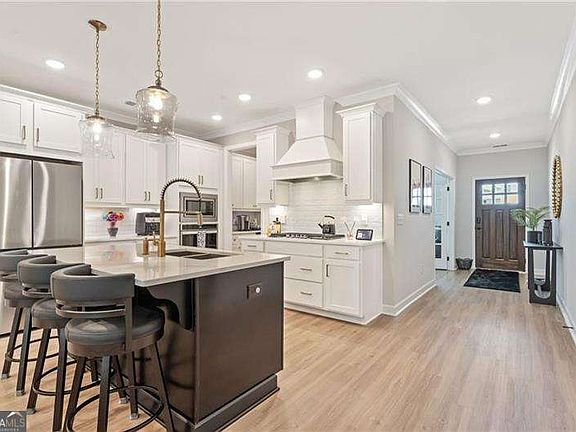 Built with you in mind! This beautifully upgraded 5-bedroom, 3-bath single-family residence-built in 2023-is packed with stylish features and smart design. One of Traton's most desirable floor plans. Step inside to discover a bright, open floor plan with a spacious main-level bedroom and dedicated home office complete with built-in storage-perfect for remote work or study. The chef's kitchen is a showstopper, featuring a large island, walk-in pantry, and beverage station-ideal for entertaining or daily convenience. The cozy open floor plan includes a sophisticated living room that boasts a fireplace with a custom accent wall, adding warmth and style to your gatherings. A generous dining area is the perfect backdrop for gatherings. Upstairs, a central den anchors the layout, leading to four well-sized bedrooms. The primary suite is a true retreat, offering a spa-like bath and an oversized walk-in closet that will impress. Looking for a walk, bike or run? Then just go out back to the Silver Comet Trail or access the resort style community pool & pickleball courts Enjoy all the perks of modern living in a vibrant neighborhood.