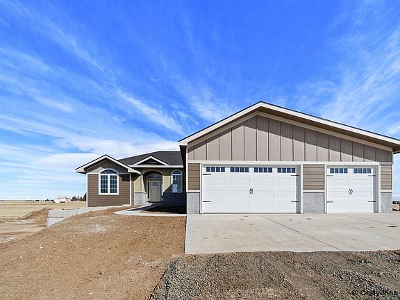 **The builder is offering $25,000 in buyer concessions that can be used for interest rate buy-down or closing cost assistance! Welcome to one of Cheyenne's newest subdivisions with paved access to the home - Meadowlark Airpark! **to be completed by February** Milliron TJ Construction presents this outstanding floor plan on 5.78 acres. The ‘Meadow’ has a split bedroom design. Amenities include a spacious kitchen w/quartz surfaces, LVP flooring, 5 piece primary bathroom, massive walk-in closet, main floor laundry, vaulted ceilings, unfinished walkout basement with a full bath rough-in, 95%+ furnace, central AC, 3 car oversized garage with 8’ doors and class 4 roof. Enjoy the covered porch and patio with access from the primary bedroom! Horses, 4H projects and outbuildings allowed. Enjoy incredible sunrises and sunsets in Meadowlark! Easy directions to the home: Hwy 30 east, turn N/E on Railroad Rd. for 5.7 miles. Turn north on Earhart Dr. into Meadowlark Airpark subdivision. Picture are form a previous model and color selections will vary.