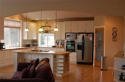 Gorgeous and majestic.Home and the views.Enjoy this 5 bedroom hm with Mt Rainier views & the most beautiful sunrises. Huge gourmet kitchen with 8ft center island. Kitchen,dining and living area all open and has 20ft vaulted ceilings. 2 fireplaces to keep warm in the winter. Entertainment size deck for those big gatherings. Master bdrm has an exit to the front deck taking full advantage of the sunrise & mntn. Central Vacc up & dwnstrs. Garden space,apple trees & other mature lndscp.