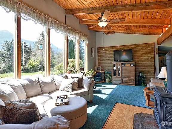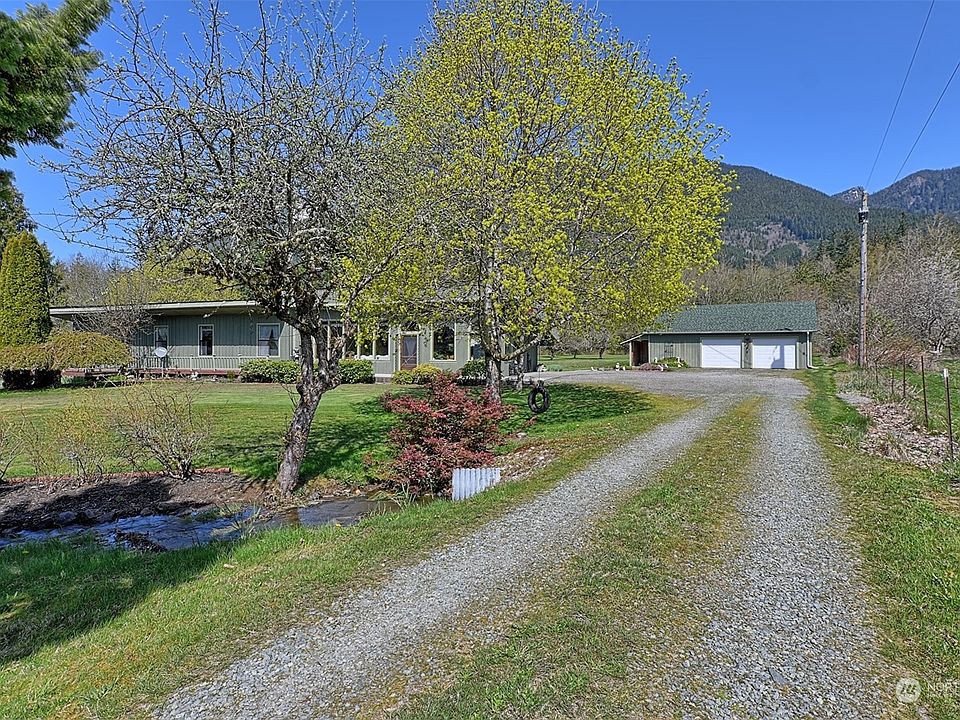 {FIRST TIME ON THE MARKET IN OVER 25 YEARS} OH. THE. VIEWS. Not your cookie-cutter home! Tongue & groove ceilings with wood beams vault to the wall of windows in the living room. TONS of natural light, free standing gas stove for additional heat source & dining room alcove. Updated kitchen boasts a gas cooktop, granite c/t's, tiled backsplash, eating bar and a HUGE pantry closet w/built-ins. The king-sized master suite has a bonus room, private BTH, walk-in closet and door to deck & hot tub! Mature landscaping, babbling seasonal creek, fruit trees-and ALL level pasture! Detached 2 car garage w/ workshop area has 2 openers & its own electrical panel. Tucked away in the Stilly Valley & only minutes from Darrington and 20 minutes to Arlington!