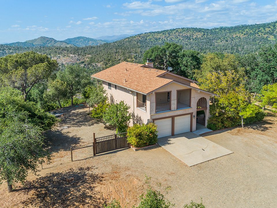 This is it! Peace and quiet atop a majestic hill with amazing 360-degree views. On top of this beautiful 10-acre property is a fully renovated 2473 square foot home with custom landscaping. Updated in 2020. As you enter through the double doors from the courtyard you will notice the open concept living. The chef's kitchen is equipped with lots of storage, stainless steel appliances and pantry. Upstairs are 3 bedrooms including the large master with its own fireplace, sliding barn door and on-suite with soaking tub. All upstairs bedrooms have their own access to balconies with unobstructed views. Downstairs is another bedroom with a sliding glass door leading to the courtyard. This room would make a great office or guest bedroom next to the private bath. Enjoy entertaining on the large patio equipped with post anchors for a future pergola or gazebo. Follow the concrete steps down to the private pergola with 50 amp power all ready for your new jacuzzi. You must see this home and amazing property in person! Make your appointment to see it today.