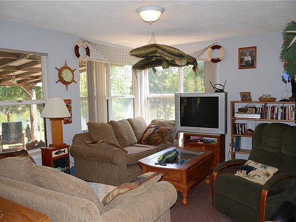 Breathtaking waterfront property in the gated community of Cedar Lake! Catch your fish and walk them to your grill on your covered patio and enjoy the view with your friends and family! You are also within walking distance from the private beach and boat ramp. House is move in ready! Has two living areas with the kitchen in the center. Double carport available for use but is not on the property. Couches, Recliners, TVs, End Table Coffee Tables, Day Bed, Kitchen Table all stay with property. One shed 16X10 and another 13X8 shed to store all your tools and toys. Roof replaced in 2012. NO dishwasher or W/D hookups. Has 2 wells. Central Heat and Air. You won't want to miss this one! Perfect peaceful getaway cabin! Come see it today!