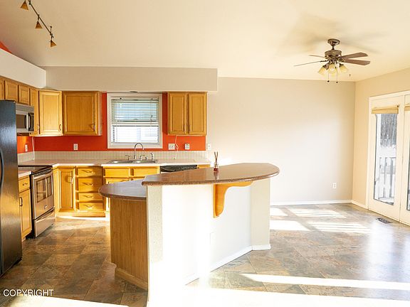 SouthWest facing open concept with vaulted ceilings, & two living rooms. Bright & spacious kitchen with breakfast bar, access to southwest deck or bay window. Ample storage through this home & garage with built in shelving. Large Trex deck in backyard complete with patio furniture and playground equipment. New windows & doors from Renewal by Anderson. All appliances stay. 12/22 Appraisal on hand.