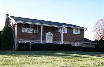 Great 5 bedroom in wonderful community! Freshly painted, move in quick! Spacious Living Room, hardwood floors on 1st floor, 2 full bathrooms, nice Family Room with brick wood-burning fireplace.The kitchen floor was just replaced November 2013. Beautiful level back yard and cement patio, over sized 2 car garage a plus. All window treatments, washer, dryr and refrigerator remain in as is working condition. Close to major routes, 191,512, 22, 78 and 33. Call today!