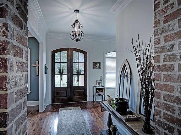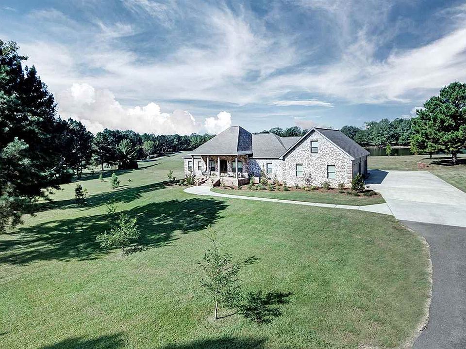 Peaceful and quiet; private but not secluded. Rest, relax, rejuvenate -- and fish! This 2.77-acre property on McGuffee Road in the Clinton School District is just minutes from Continental Tire's new facility and I-20, and is only a 10-minute drive to most Clinton Schools, the Natchez Trace and Olde Towne Clinton. Off the beaten path, but not too far off! The home sits closer to the back of the lot and its driveway ends with an oversized parking apron that ties into a rear patio. It's well-situated on the lot to enjoy sunsets and gazing at the water from the patio or the covered rear porch. It's also a great place from which to watch the kids or grandkids fish. The lake is stocked periodically and often offers successful angling. The almost-3000-square-foot home itself is full of special touches: A large covered front porch, wood floors in the living spaces, gorgeous interior brick work, a spectacular kitchen and a classic master suite add to the overall charm. The welcoming foyer offers a small sitting room to the left, perfect for enjoying the expansive front yard with a cup of coffee as the sun rises. Immediately across the foyer is a large formal dining room, also accessible to the kitchen. An arched brick doorway leads from the foyer to the family room, which has another larger arched brick opening to the kitchen, nicely tying the spaces together. And what an amazing kitchen! Likely to be the focal point for this home's new family, this is one of the nicest we've seen. Beautiful granite countertops, including atop the huge island/dining bar. Copious cabinets, drawers and counter space, including a beautiful glass-fronted, brick-backed double-cabinet to display your best china; stainless appliances, including five-burner gas (propane) cooktop and double wall ovens, dishwasher and built-in ice maker. Gorgeous brick and travertine backsplashes. And just off the kitchen are a spacious walk-in pantry and guest half-bath. Across the family room from the kitchen is the master suite. Another small foyer with a linen closet leads into the large and accommodating bedroom, which offers what feels like a spa for a bathroom. The dual head master shower has a marble seat and sensational stonework. The classic clawfoot tub will be luxuriating and rejuvenating at the end of a long day. There are separate granite-topped vanities with ample counter space and a water closet. Oh, and speaking of closets, you'll have to see the primary one -- it's a dressing room, really -- to fully appreciate it: Fit for a Queen, with built-in cabinets, drawers, hanging rods and a large counter space make it unique. The suite also includes a small room off the bedroom which could be used as a computer room, additional storage or another closet. Across the home are two more comfortable secondary bedrooms, with a jack-and-jill bath (with both tub and separate shower and separate vanity areas), and the rear entry hall, which leads to the upstairs bonus room, convenient family electronics charging station, an especially functional laundry room (with even more storage, a sink and a hanging bar) and the cavernous three-car garage, . The open garage is something to behold, big enough for cars, boats, trailers, storage or a workshop area if so desired. The bonus room over the garage is also quite large, and is versatile for whatever its new owner wants it to be -- playroom, den, media room, office or workout space, or a combination of several. Off of it are a heated and cooled storage space and easy-to-access and maneuver attic space.