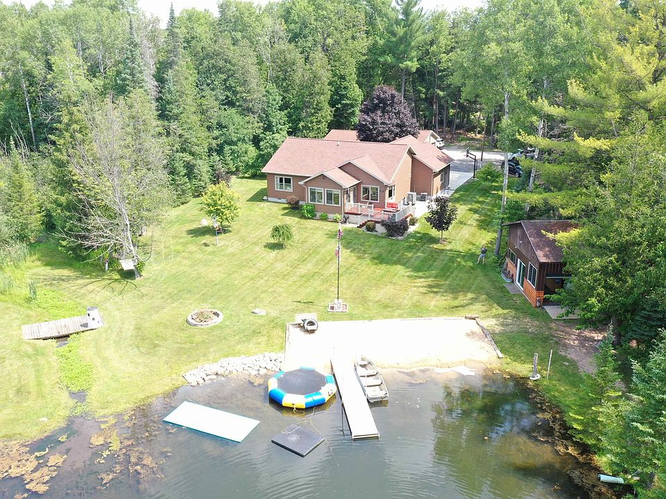 GORGEOUS SETTING for this relatively newly constructed 3 bedroom 2 bath home sitting on approximately 6.22 acres and overlooking a 0.5 acre 20 ft. deep spring/creek-fed pond with sandy beach area. Some of the home's many features include a whole house generator, central air, a highly efficient dual fuel hybrid furnace, a cedar deck, an engineered septic system, a spacious kitchen with solid surface counter tops, plenty of cabinets with easy close doors and slide out shelves, a master bedroom with en suite bathroom and large walk-in closet, a concrete driveway and walkways, an attached two car garage, a 12x24 outdoor tiki bar, and a heated and insulated 49x26 detached garage with a bathroom and plenty of room for toys and a workshop. All of this located on a quiet dead-end road just north or Rose City and not far from public land, lakes and streams.
