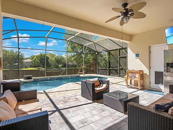 Classic style and a bright, open layout give this traditional ranch home a sense of timeless appeal. Large windows and a warm color palette help to create an atmosphere of comfort that makes you want to curl up for deep conversations with friends — and with plenty of seating areas, you can do just that! In the backyard, a covered lanai with seating area and TV wiring makes for a prime outdoor entertainment venue. The beautiful saltwater screened-in pool leads directly to a paver patio with charming pergola, as well as a fun playset for the kids! With a large laundry room, expansive primary suite, and updated kitchen, this house checks all the boxes on your dream home checklist!