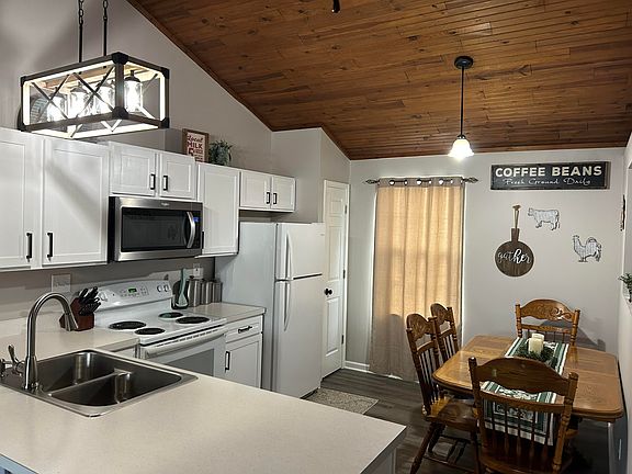 White wood trim and shaker cabinets are accented by vinyl plank floors and tongue & grooved vaulted ceilings in the main living area which includes a spacious eat-in kitchen and a breakfast bar. Updated bathrooms, newer deck, new roof & soffits (2023) and extra garage storage [built above garage door]. Lower level has 2 adequate bedrooms and a separate laundry area. HOA fees cover exterior maintenance. Look and see this value in a convenient area of Lexington which is close to I-75, Jacobson Park, & Richmond Rd shoppes.