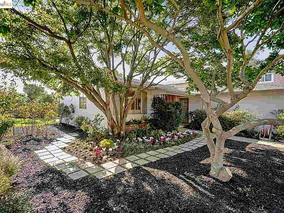 This light-filled house features a thoughtful floor plan that includes a spacious living room, an eat-in kitchen, three bedrooms, two bathrooms, an expansive fenced rear play garden and an attached, two-car garage. The home is situated on a private court with a spacious yard that wraps around the entire property. The mid century modern living room boasts a two sided fireplace. Easy access from the kitchen to rear garden provides the perfect layout for dining or relaxing outdoors. The bedrooms are located through the hallway. The 3 bedrooms all feature ample closet space. The master bedroom can be found on the left side of the hallway, towards the garden. Both bathrooms have been upgraded with new fixtures and flooring. Commuter options are plentiful, and include easy access to the Fremont BART station along with Amtrak.