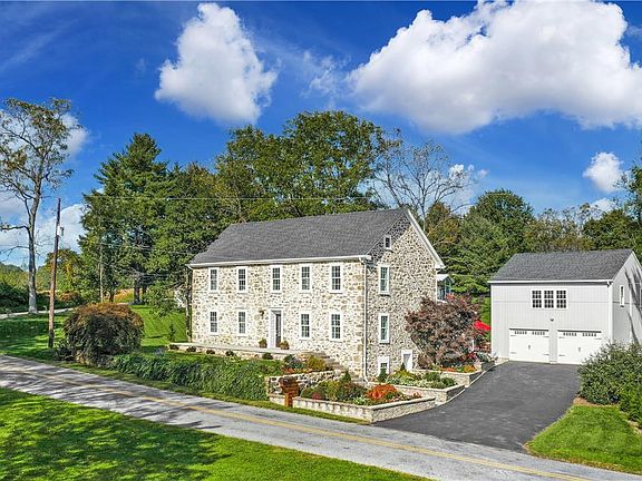 With an incredible legacy that can be traced back to the founding of the United States, this 1700’s historic stone home is filled with period details & unique touches. Once part of a 200-acre tract deeded to Thomas and Richard Penn by appointment of King George I, it later became the property of Johannes Ortt & remained in the Ortt family for over 100 years. Today this lovingly renovated farmhouse is ready to welcome the next generation with additions & amenities suitable for today’s modern lifestyle. Every inch of this home has been newly refinished or replaced, while maintaining rich historic details such as the beautifully repointed stone both inside & out. Random width original wood floors & exposed wood beams are accompanied by deep-silled windows, built-ins, & a fireplace with gas insert. A new addition incorporates a modern kitchen with stainless appliances, granite countertops & a large island. The addition also includes a 1st floor primary suite with abundant windows & a luxurious en suite bath. 4 large bedrooms & 2 hall baths complete the 2nd floor. The detached garage also features an in-law suite or guest cottage, with a kitchen, bedroom & full bath. With just over an acre of land, the outdoor space is lush with mature trees & newly planted perennial gardens. A new paver patio with stone walls is an invitation for cookouts & firefly shows. The marriage of history and a beautiful farmhouse renovation makes this home one to treasure.